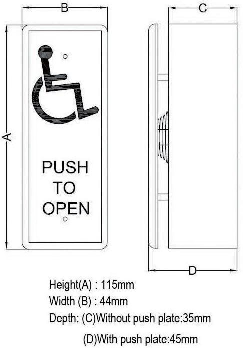 Wide push plate - convenient for users especially the disabled Stainless steel brushed finish 5A/125VAC, 3A/250VAC