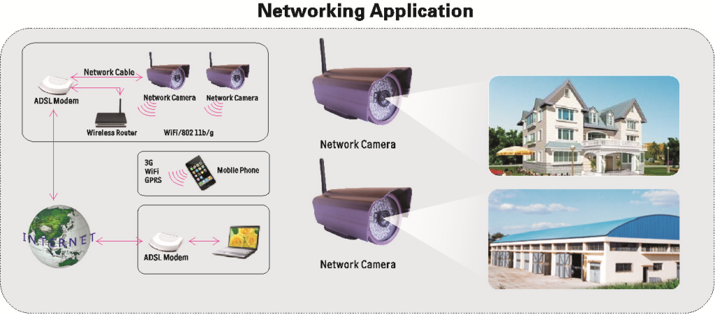 This product is a electronic equipment which is able to transmit dynamic video stream to all over the world through the network. The user can always monitor the place he wants from anywhere, as long as he is able to connect to internet. This IP camera works based on the TCP/IP standard. A web server is integrated inside which can support internet explorer. And this feature can help you to accomplish online management and maintenances on your device simply, such as remote configuration, remote start-up and firmware upgrade.You can use it at homes, offices, factories, stores, nurseries and etc. It's very simple, convenient and real-time.